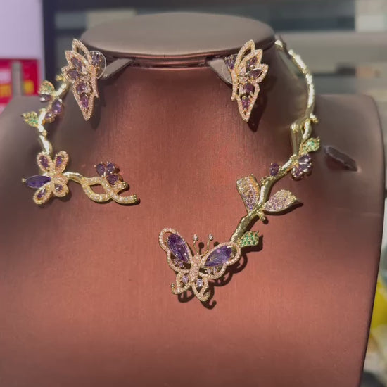 Violette Flutter Necklace by Oormii Jewels – Purple Butterfly Pendant in White Gold Plated Finish | Elegant Amethyst-Inspired Jewelry for Women